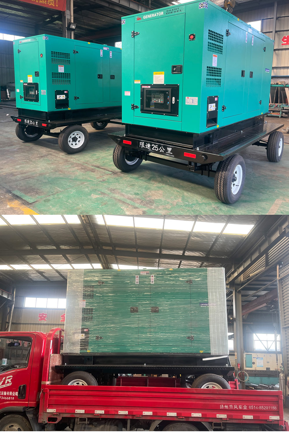 蘭州地區某電力公司訂購的2臺移動低噪音柴油發電機組生產完畢,裝車發運。電力公司歸屬于國家電網,大家都知道,國家電網對品質的要求是很高的,因此發動機選型、發電機選配、箱體和移動拖車材料的選擇,甚至到控制系統電線的品牌配置都與我們進行了細致確認。長久生意就得處處為客戶著想,作為一家20余年的發電機專業工廠,我們愛惜自己公司信譽,時刻處處為客戶著想,合作共贏。
