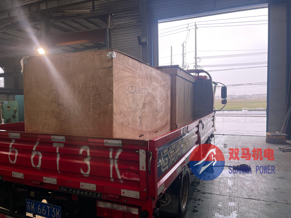 兩臺500kva玉柴開架式柴油發電機組裝車發運青島港,裝柜出口。