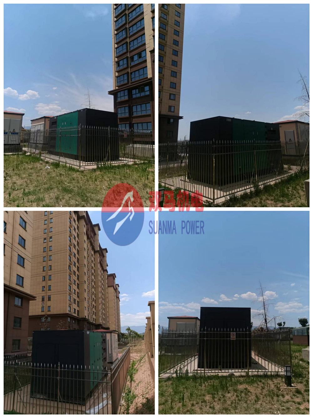 小區(qū)應急備用電源投運交付業(yè)主使用。現(xiàn)場選用3臺1000kw靜音柴油發(fā)電機組,戶外安放,外型美觀大方,確保意外停電時小區(qū)重要電氣設(shè)備的正常運轉(zhuǎn)。